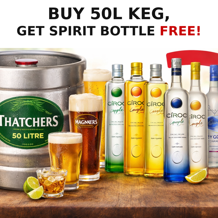 Add 1x qualifying 50L keg from this collection to your cart, then add 1x selected spirit. The spirit will be free automatically at checkout.