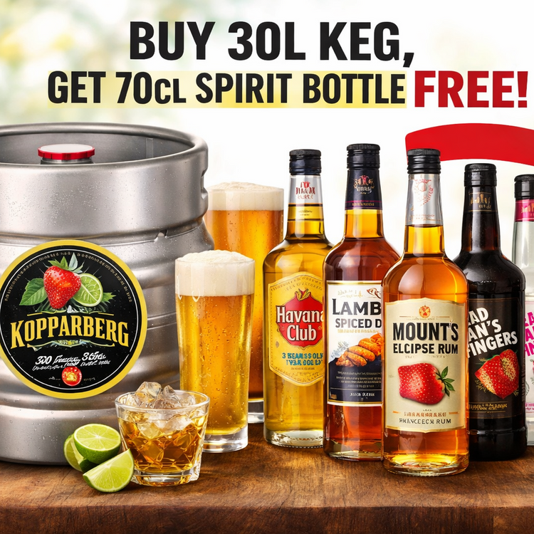 Add 1x qualifying 30L keg from this collection to your cart, then add 1x selected 70cl spirit from the list below. The spirit will be free automatically at checkout.